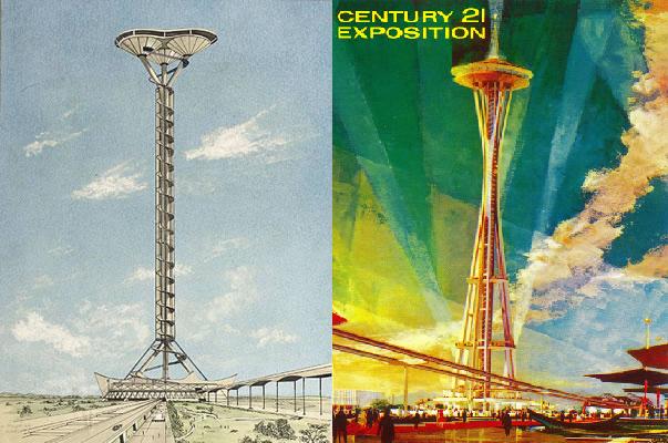 That’s one I don’t recall although if it was in Heavy Metal I’m sure I must have seen it. Not unlike the ridiculous “Car-Vu” parking tower in the first episode of the Captain Scarlet TV series which would have involved the same dizzying (and no doubt dangerous) corkscrew ride. There’s a picture of that here comparing it to the Seattle Space Needle which was another exposition building: