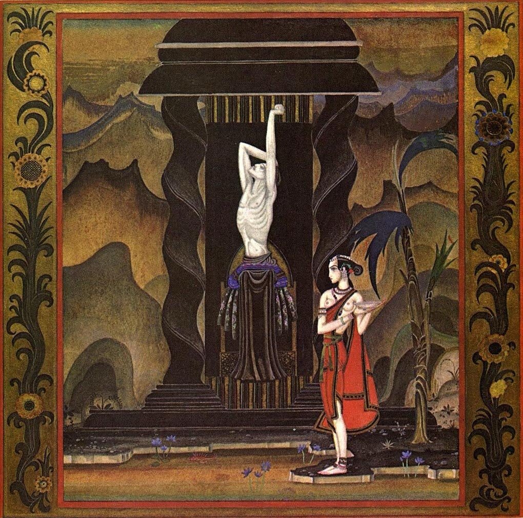 Last week a Kay Nielsen illustration passed through my RSS feed, a picture I thought for a moment I hadn’t seen before. A quick search revealed that the illustration is in fact present in a book on my shelves, The Unknown Paintings of Kay Nielsen (1977), one of the series of art books co-published by Pan and Ballantine in the 1970s. A selection of Nielsen’s illustrations had appeared in the series two years earlier in a book simply titled Kay Nielsen; the arrival of a follow-up made the Dane the only featured artist aside from Frank Frazetta to be the subject of multiple volumes.